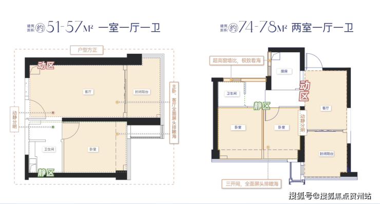 (2)海荟户型:73-75㎡两房一卫,如73㎡两房两卫、75㎡两房两卫。