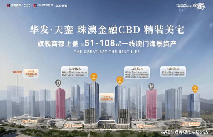 天銮T5所在的华发琴澳新城,是珠海十字门中央商务区的封面之作——建筑面积约240万㎡滨澳CBD大城,左拥澳门、右揽横琴,坐享“四区叠加”政策红利(大湾区、经济特区、横琴粤澳深度合作区、自贸区)。这里汇聚了珠海中心、国际会展中心、瑞吉酒店、十字门华发商都等千亿级配套,超13000位业主已率先抢占红利。(信息来源:琴澳新城官微)