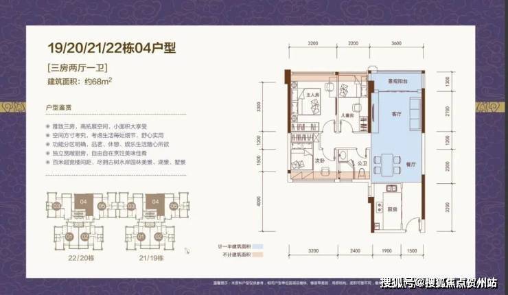 据勾房助手了解到,目前项目加推3期全新的22栋,户型方面包括68-120㎡等产品,其中68㎡是3房户型,116-119-120㎡ 是4房产品,折扣方面有85-88折不等,不仅产品给力,折扣也给力。