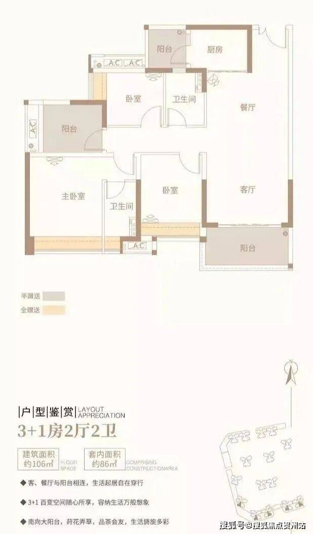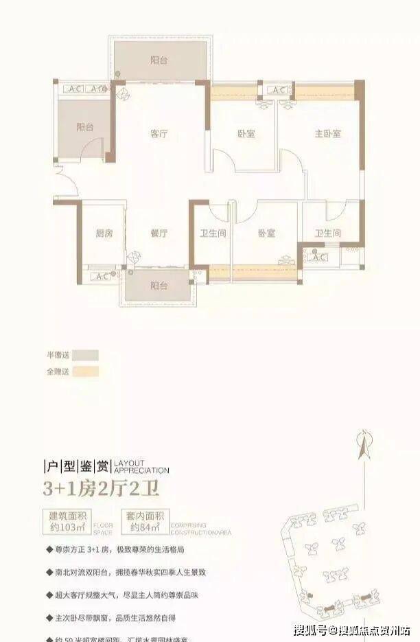 3+1房2厅2卫/约103平方米/南北对流双阳台