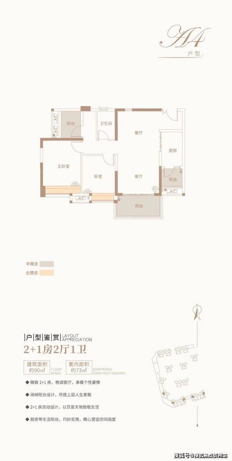 2+1房2厅1卫/约90平方米/阔绰阳台,尽揽高贵