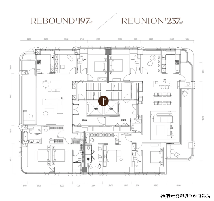 今年首开1栋的小高层住宅,约42套197-237㎡四房大平层。