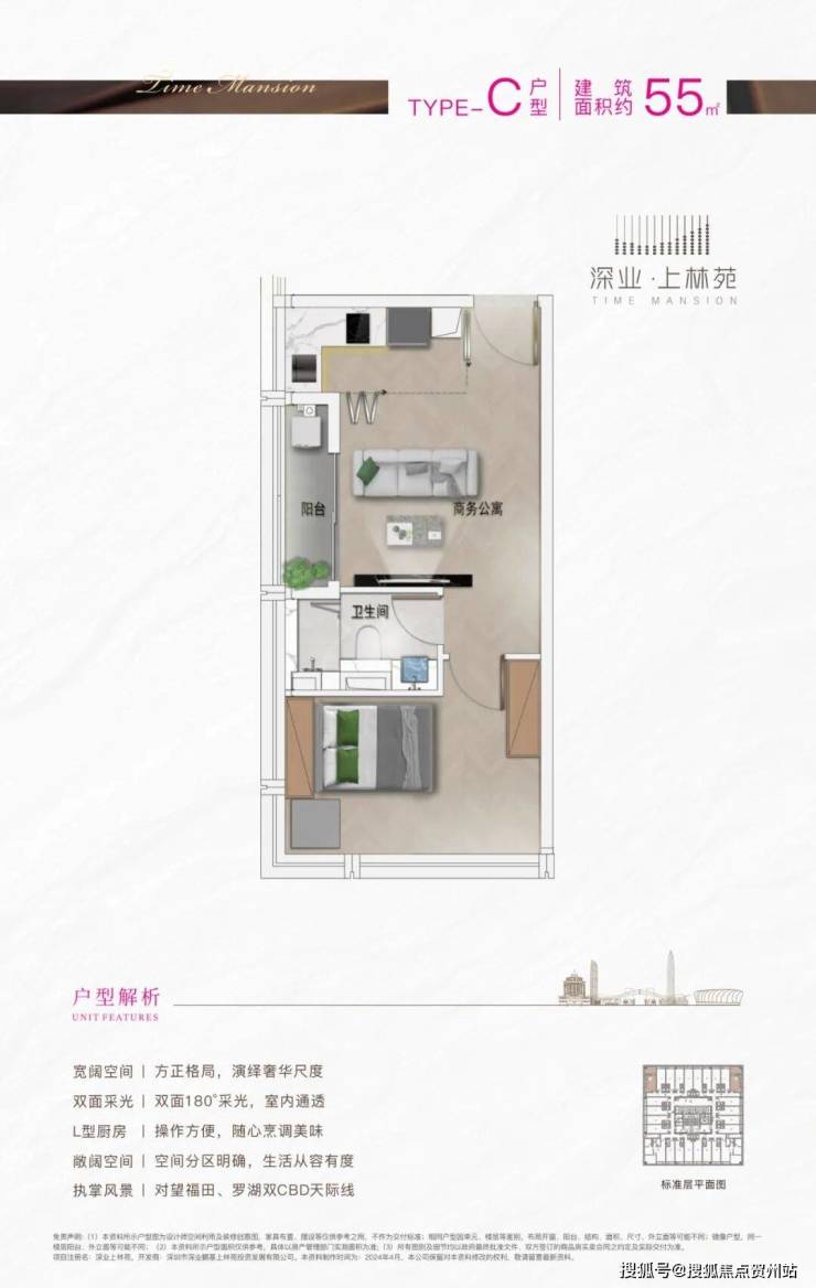 【深业上林苑】共一栋楼,建面约40-97㎡1-3房,约3.6米层高,户户带阳台。