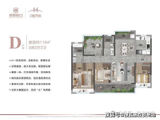 户型:在售 79 - 119㎡的 2 + 1 房至 3 + 1 房,户户朝南。具体为 79㎡2 + 1 房 2 厅 1 卫、89㎡2 + 1 房 2 厅 2 卫、105㎡3 + 1 房 2 厅 2 卫、119㎡3 + 1 房 2 厅 2 卫。其中 105㎡是热门户型,采用大横厅设计且五开间朝南带双阳台;三期 16 栋设有 79㎡、105㎡的情景板房和交标板房,可预约参观。若想查看完整户型图,可联系售楼处获取。