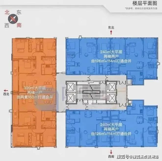 梯户:320㎡ 2梯1户,240㎡ 2梯2户;
