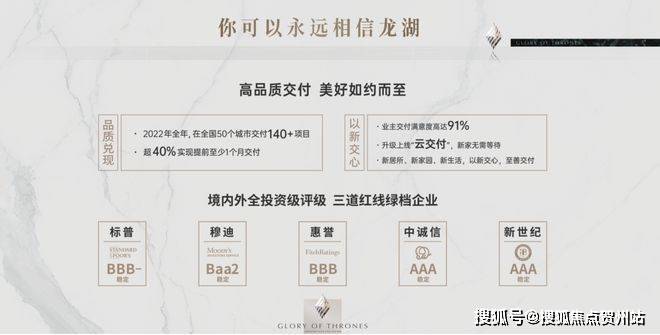 强交付力:全国项目100%如期交付,其中超40% 提前至少1个月交付,业主交付满意度91%;