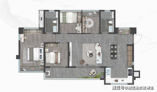 御雲:建面约80㎡三室两厅1.9卫,创新型1.9卫设计,臻享从容生活