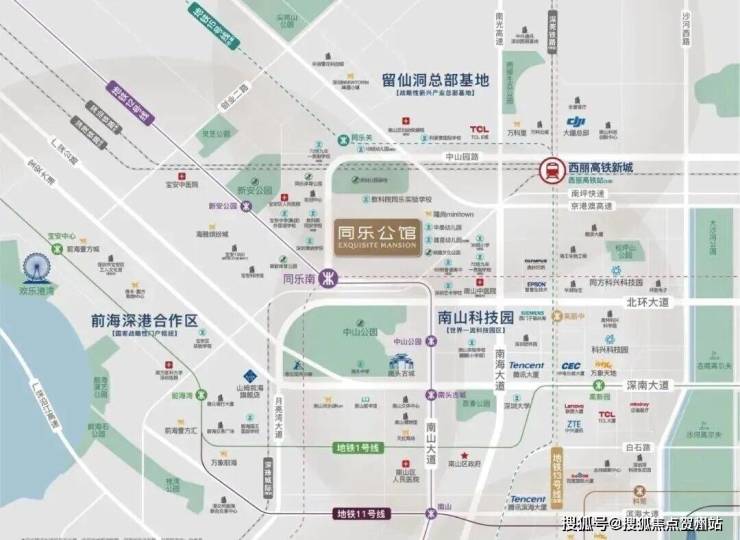 同乐公馆所在的同乐片区,地处南山重要区位:东接科技园,西邻前海,南靠后海深圳湾,北依西丽留仙洞。这一地理位置使其成为连接多个重点片区的枢纽。项目距离已开通的12号线同乐南站约500米,在建的15号线同乐关站也在附近,未来双地铁加持将进一步提升出行便利度。