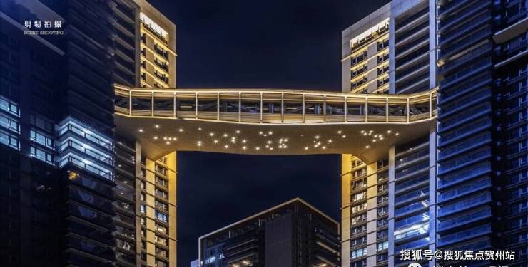 云玺锦庭是一座精心设计得恰到好处的建筑,空中廊桥、顶部的空中庭院,将原本独立的两栋建筑在高空连接起来,形成无障碍观景平台,是居民观看日落、欣赏城市夜景的绝佳去处。空中云厅采用满足适应活动的低照度,用一系列漫射、低矮的点光源进行装饰。连廊下层采用不锈钢进行装饰,利用精细工艺打磨出不同程度的哑光,从而映射出 “月下星光” 的光影意境。