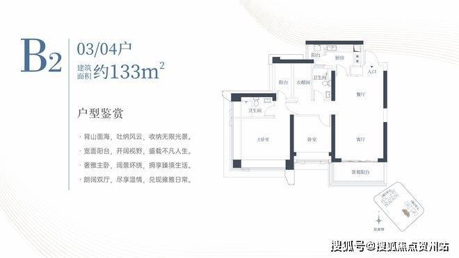 1栋二单元B2户型:面积约为133㎡