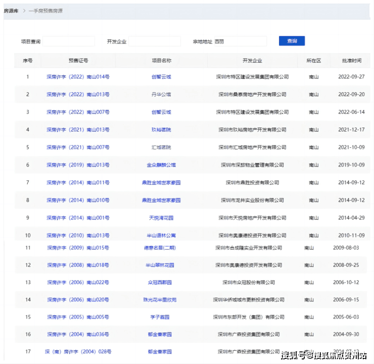 从房地产信息网官方数据中可以看到,西丽最早拿预售证的项目是2004年,至2022年,已登记拿证真正的商品房项目非常少。