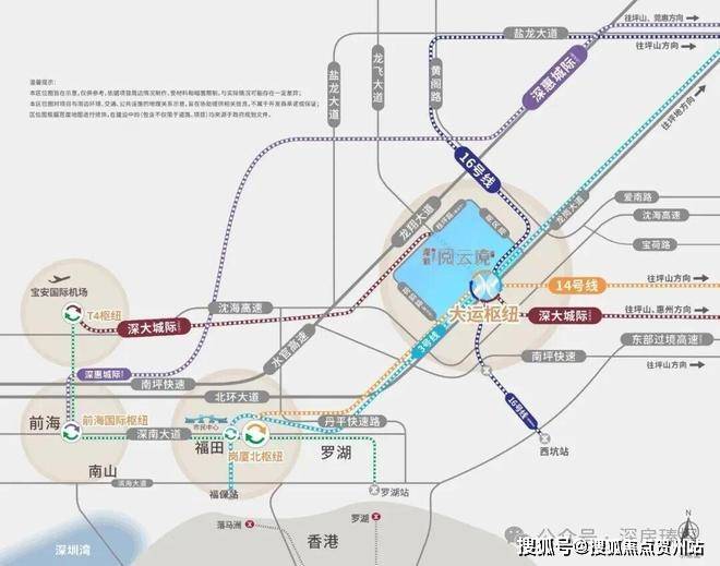 交通配套:深铁阅云境广场交通配套以"四线交汇"为核心优势,打造深圳东部最便捷的TOD交通网络8920。项目位于大运枢纽站上盖,该枢纽是深圳东部最大的综合交通枢纽,集地铁3号线、14号线、16号线和深大城际(33号线)四线于一体,实现站内无缝换乘321。地铁3号线可直达罗湖(6站)、福田岗厦北(8站);14号线可快速到达福田中心区;16号线连接龙岗与坪山;深大城际预计2026年11月开通,可直达宝安T4枢纽(7站)和惠州大亚湾(需换乘)。