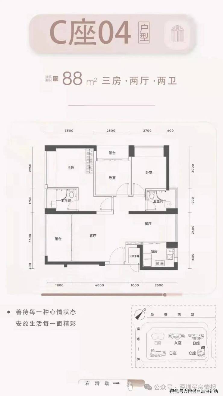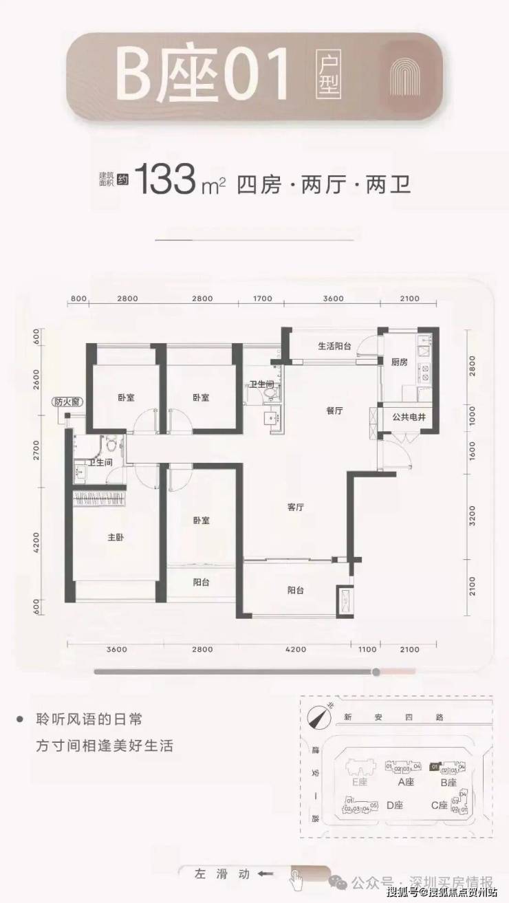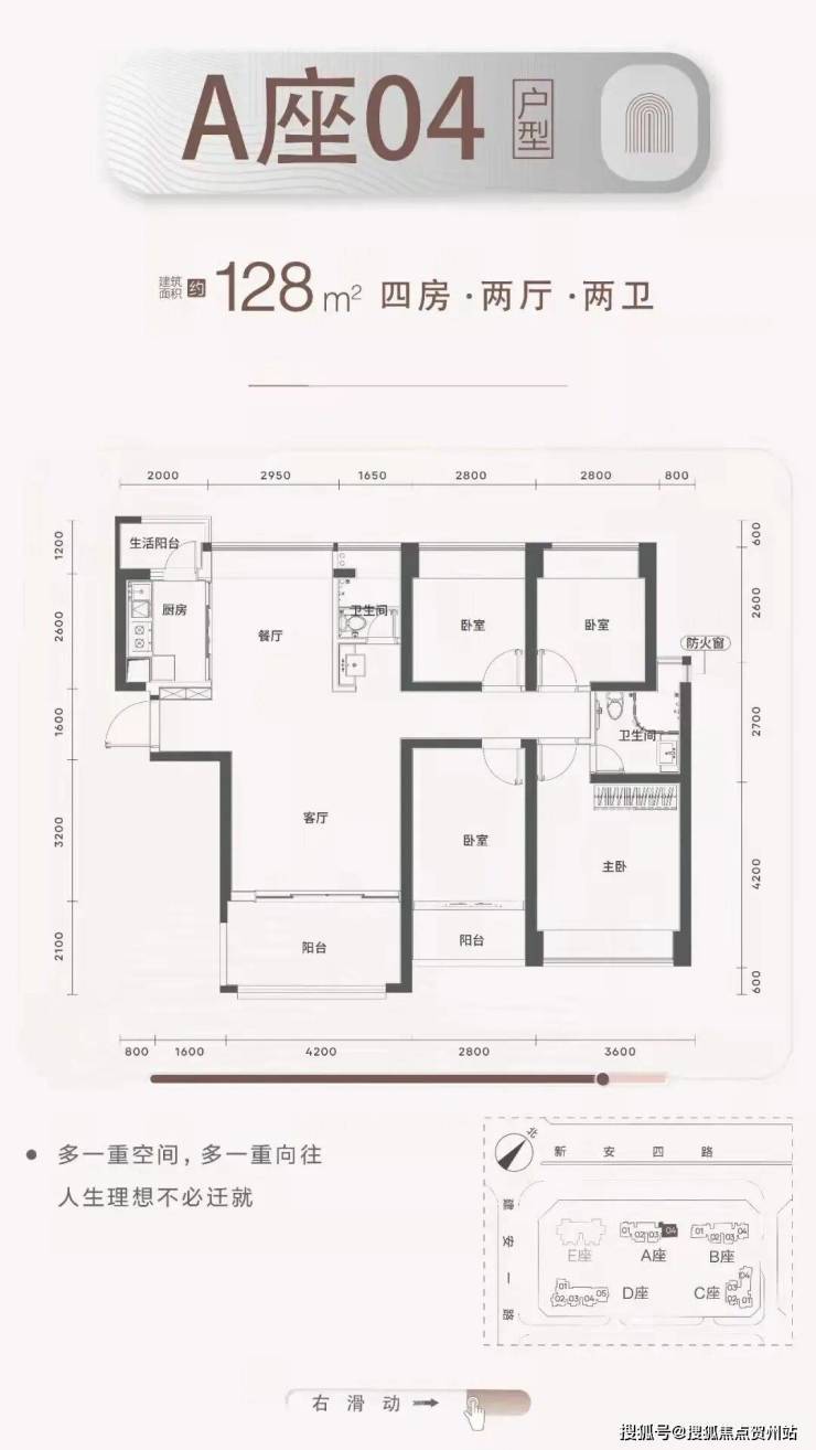 梯户比:A-C座2梯4户,D座2梯5户