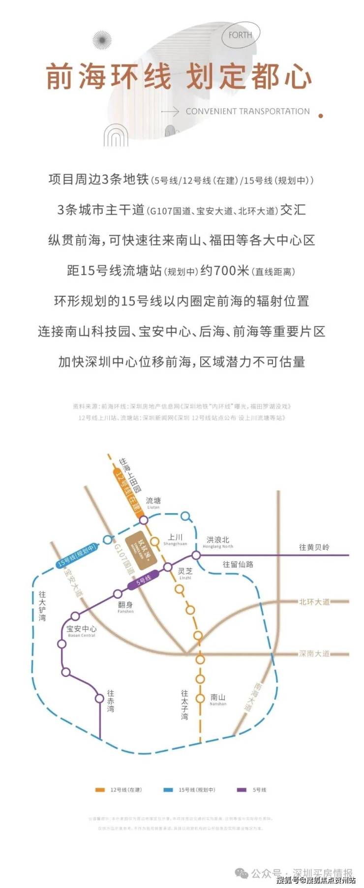 项目周边目前已开通的地铁5号线,同时享受在建12、15号线(规划中)共三地铁线环绕,自驾由广深公路行、宝安大道,30分钟可达福田、南山、宝安中心区。