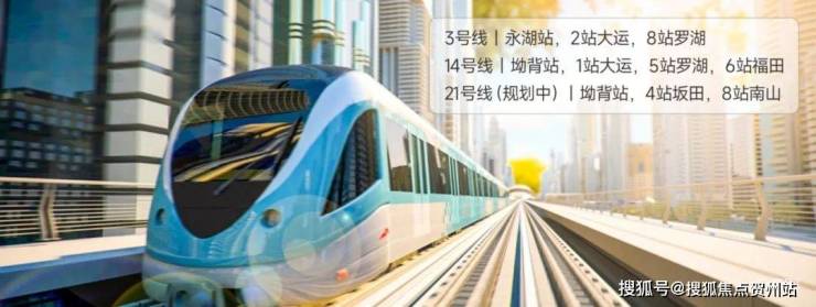 交通配套:项目紧邻地铁3号线永湖站与14号线坳背站,其中永湖站步行距离约500米(约10分钟),14号线坳背站约1.1公里(需步行15分钟),通过14号线,1站可直达大运枢纽(换乘深大城际),5站至罗湖、6站至福田中心区,快速连接城市核心。
