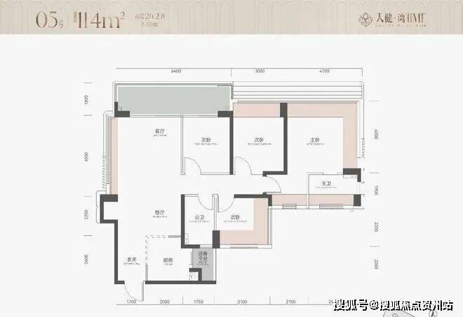 114㎡四房两卫设计独特,客厅270°采光观景,远眺山景,视野非常好。这个户型很安静,适合对采光和视野有要求的家庭。