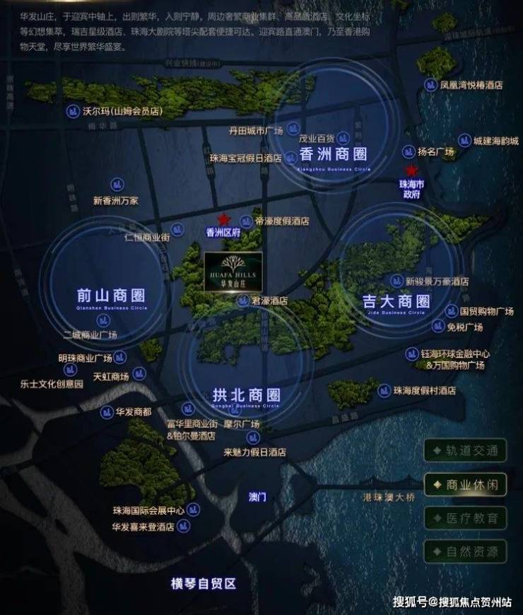 华发山庄,坐落于珠海主城区——香洲区核心。香洲,沉淀了40多年的醇熟配套与政经大脉,集萃着珠三角资金流和信息流,抵达澳门仅约5公里,距港珠澳大桥约10公里。由岁月积淀衍生的质变,往往是华发山庄此类顶豪的择址所在,增值契机不言自明。