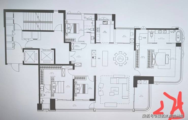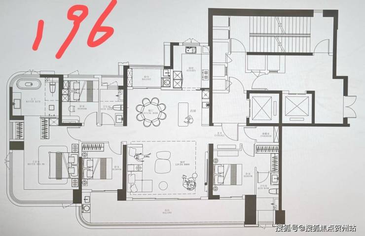 较大的南地块,则排布了3栋A、B座以及4栋。这里边3栋A座43层,3栋B座31层,4栋46层。四栋楼均是一层四户的设计。