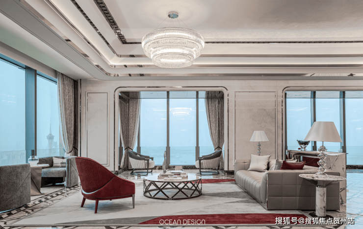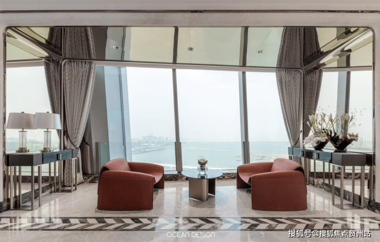 当迈入接待大厅,场所氛围与339米高空共同营造出如有白云作伴之感,微风泛起江面涟漪,设计侧重突显位置独特的视觉焦点,以简约先行为概念,脱离形式材质的繁冗,平行都市与人居生活方式,勾勒湾区城市封面。