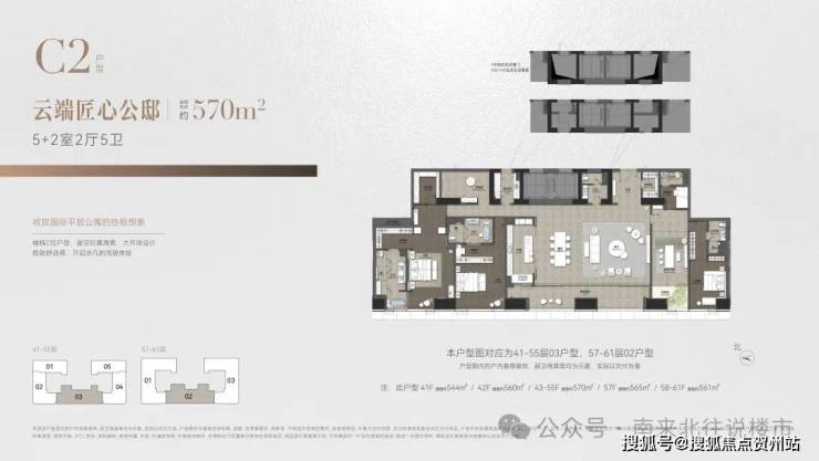 ◎建面约570㎡ 5+2室2厅5卫 云端匠心公邸