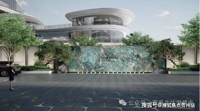 前广场主入口甄选奢石景墙、叠级水景等元素
