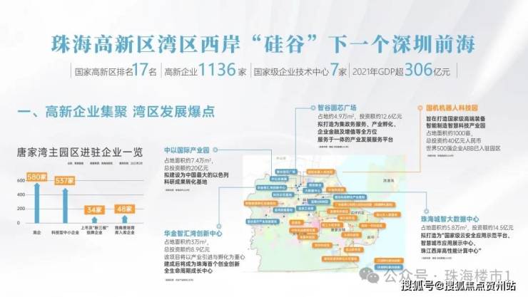 ● 汇聚10大高新产业园、1136家高新技术企业,雄聚国家机器人产业园、智谷圆芯等,将打造为湾区西岸创新“硅谷”,珠海版“前海”