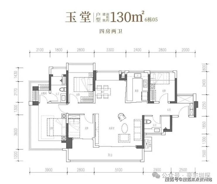 四开间IMAX光幕引景入室,以LDKB家庭聚场升温情感,更以双转角主卧套房,礼献一方休憩殿堂。• 玉堂·建面约130㎡4房2厅2卫:南向四开间,约14.7米IMAX光幕,尺度自成