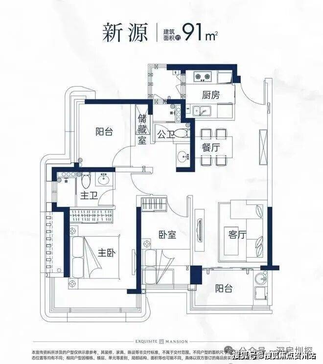 91平 3房2卫