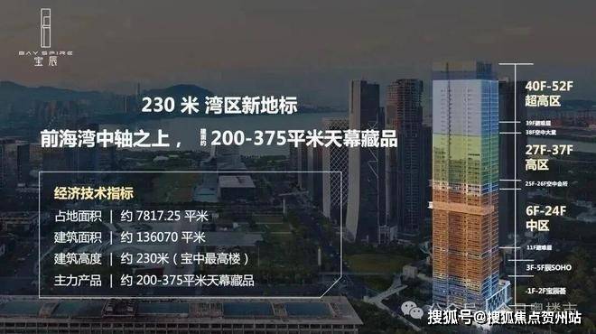华侨城宝辰高度约230米,总建面约13.5万㎡的垂直地标,是片区天际线的“制高点”代表,主要由天幕藏品、空中会所、宝辰荟组成,其中: