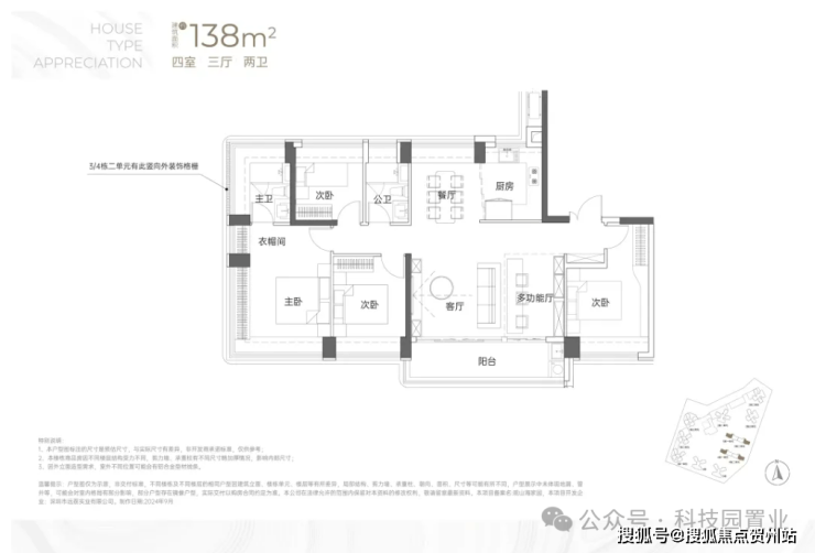 ⑥【一步到位性价比王牌 前海改善头等舱】4栋建面约138㎡奢阔山居范本:LDKB一体化,增配多功能厅、最大约15.5米南向四开间、约6m宽境阳台、主卧270°巨幕飘窗带独立卫浴及衣帽间、最高约94%拓展后综合使用率