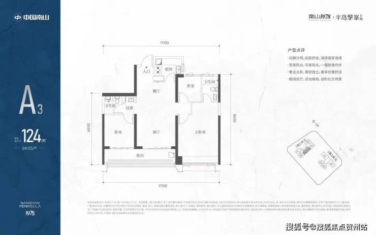 A3也是两条腿,分别是1-1栋04/05,主朝向是东南向,双龙抱珠格局。客厅拥有超大观景阳台,缺点是公卫是个暗卫,小次卧和主卫也对天井外走廊,采光不足。