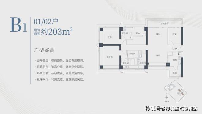 1栋二单元B1户型:面积约为203㎡