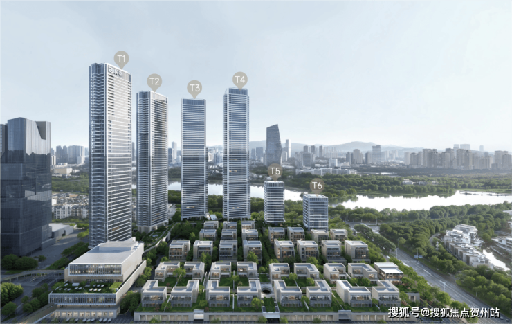 业态组成:规划有4栋超高层公寓、2栋高层办公楼、19套独栋董事公馆、16套合院别墅及约1.4万㎡高端定制商业