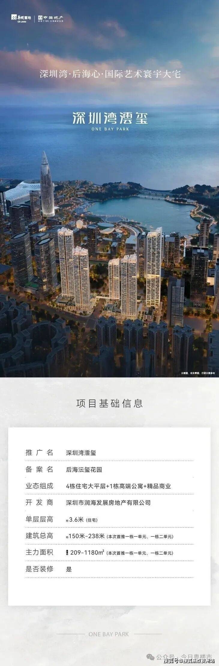 由华润和中海联合打造的后海地块「深圳湾澐玺」预计10月中旬开异地展厅,12月入市。