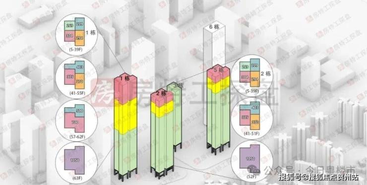 项目首推北区1栋(63F)和2栋(52F)约348套,分为高低区设计: