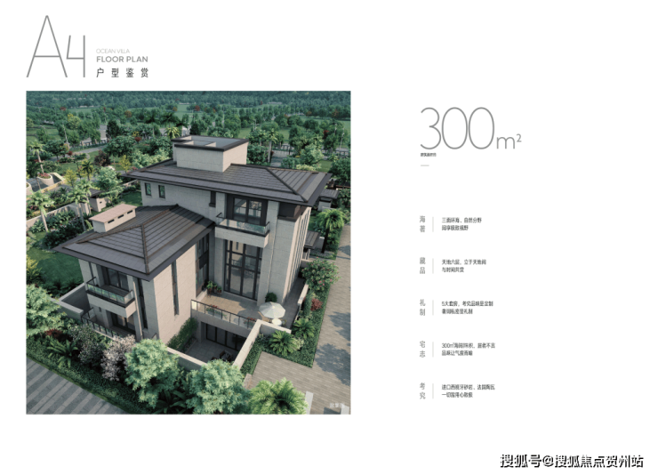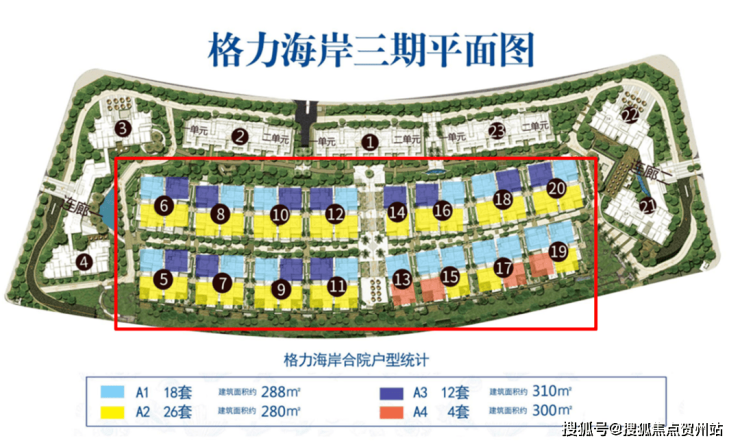 2、格力海岸别墅A4户型,东南向, 现房即买交楼。一共有6层,含赠送约660平方米左右,送地下车位;毛坯房交付,预留电梯井。