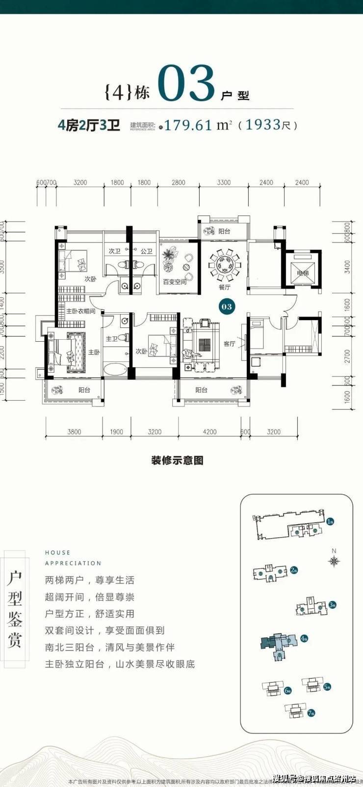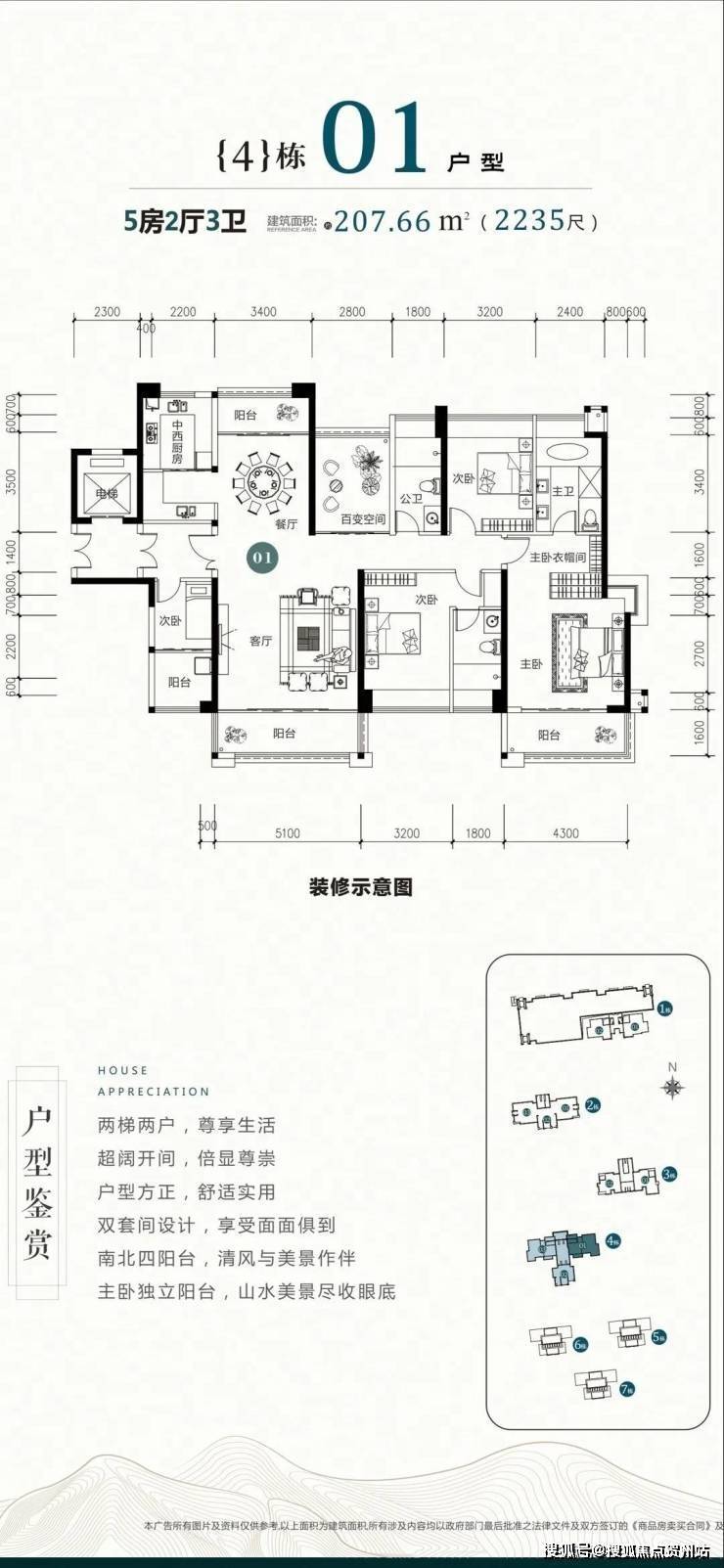 4栋户型鉴赏:建面:约179-207㎡四房两厅三卫