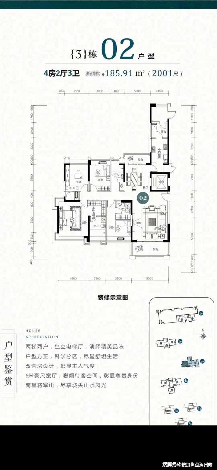 3栋户型鉴赏:建面:约185-235㎡四房两厅三卫