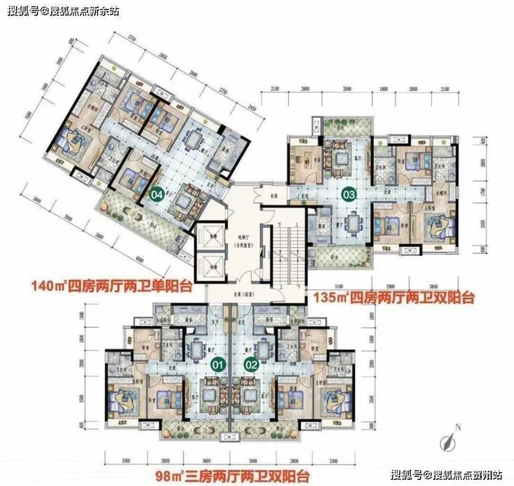 面积段:98-135-140㎡三至四房