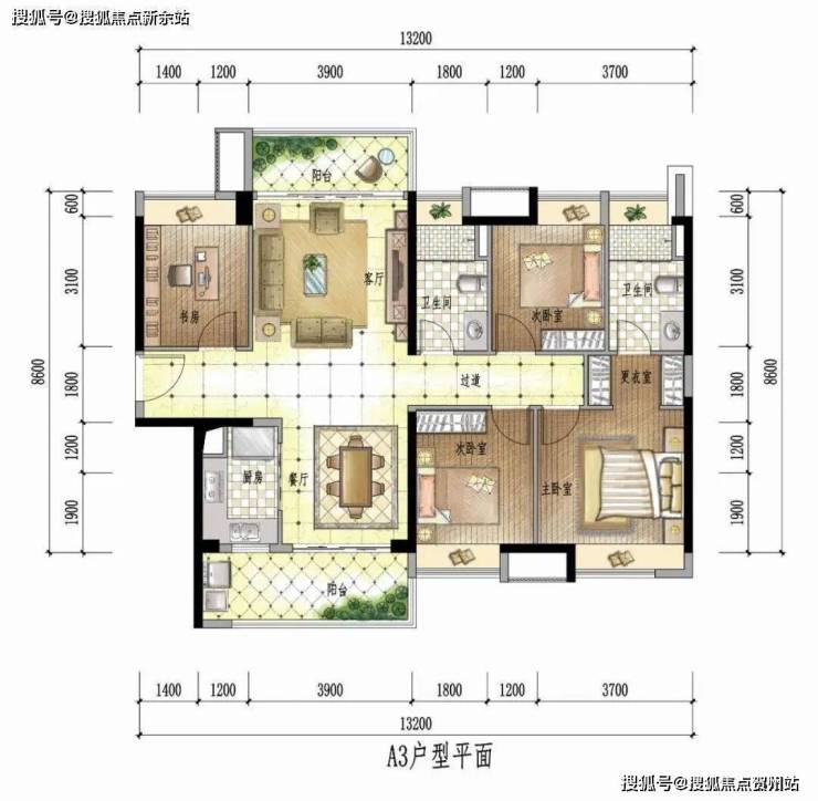 经典四房设计,超高实用率,动静分区