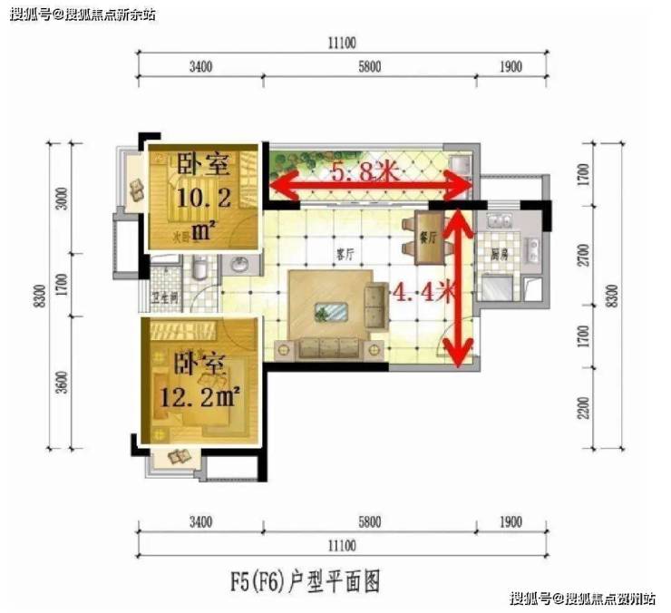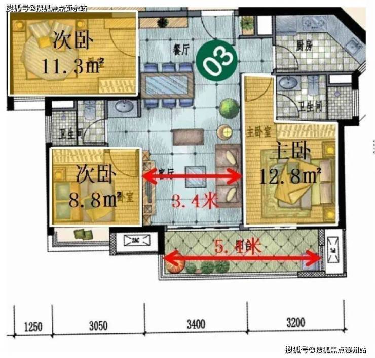 5.8m宽厅+12平主卧+270°瞰景飘窗