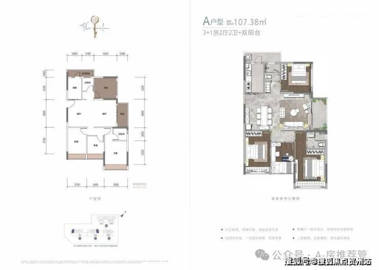 【A户型:约107.38㎡ 3+1房2厅2卫】