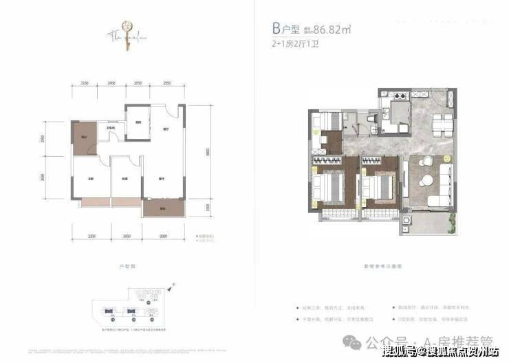 【B户型:约86.82㎡ 2+1房2厅1卫】