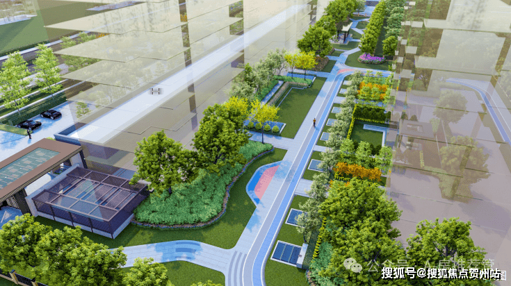 园内以线性为布局,涵盖多功能草坪区、会客聚会区、乐享休闲区三大区域,融合200多米环形健康跑道、静思品茶区、下沉式会客活动区等功能区,打造全龄健康空间。以丰富的景观植被点缀其中营造自然惬意生活。