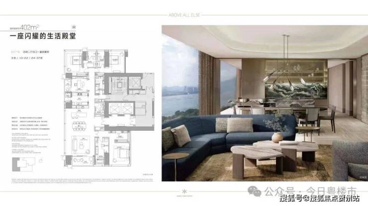 公寓主力户型为304㎡、327㎡、402㎡、570㎡以及1032㎡,公寓层高3.6米,低区5T3,高区5T2。