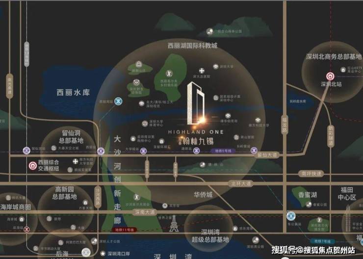 留仙大道正席,紧邻地铁5号线塘朗站,4/5/7号线3轨环绕,毗邻“三纵五横”主干道,瞬息通达全城。西丽高铁站(建设中)、深圳北站两大枢纽环绕,拥有世界交通能级。