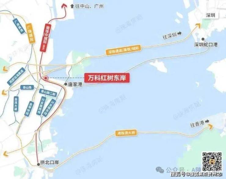 《广东省第十三次党代会报告》明确:着力打造环珠江口100公里“黄金内湾”,通过交通互联,产业互联带动广州、深圳、珠江口西岸三大都市圈发展。万科红树东岸所在的珠海高新区是大湾区新的经济增长极点,位于三大自贸区,南沙、前海、横琴的中轴线上,是黄金内湾的核心位置,未来的交通、产业利好几乎都集中在珠海高新区。【深珠融合桥头堡 下一个深圳南山】万科红树东岸所在的珠海高新区是对标深圳南山打造的片区,被定位为高新区城市中心、未来科技城核心区,同时也是深珠合作示范区,目前在国家级高新区排名17位,超越东莞松山湖,正因为珠海高新区与深圳南山的产业高度重合,因此以一条深珠通道为链接,承接深圳的外溢产业,是下一个“深圳南山”。 【深圳对岸 湾区交通核心枢纽】 湾区快线:深中通道、深珠通道(规划中)及港珠澳大桥。深珠通道通车后,深圳⇄珠海30分钟!