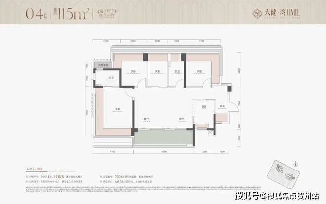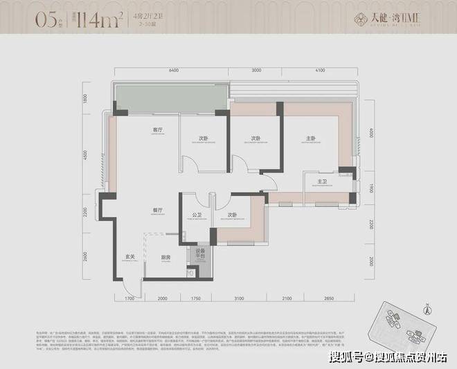静区方面,有三个卧室朝西南向,主卧甚至设计了南北通透三面采光,只有小次卧朝背面。