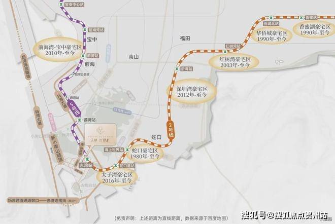 「天健湾时代府」位于南山赤湾片区,属蛇口招商街道,是南山区的西南海角,东临蛇口太子湾,西接前海自贸区。这个天然位置优势可以两头吃,是深圳未来两大高预期发展区域的桥梁。