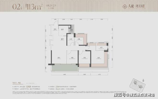 实地看整个动区显得开阔,LDKB(餐客厨阳)一体空间实得有约41.2㎡,例牌的人性化设计如半开放式厨房和S墙都有。双开间阳台约6.4米,放在113㎡的户型里是显得阔绰。